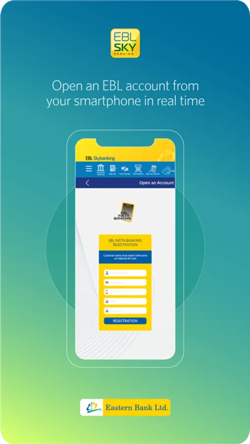 You can use your EBL Debit/Credit/Prepaid Card or Account information for 1st time Enrollment of SKYBANKING from anywhere, anytime, without visiting EBL branch.