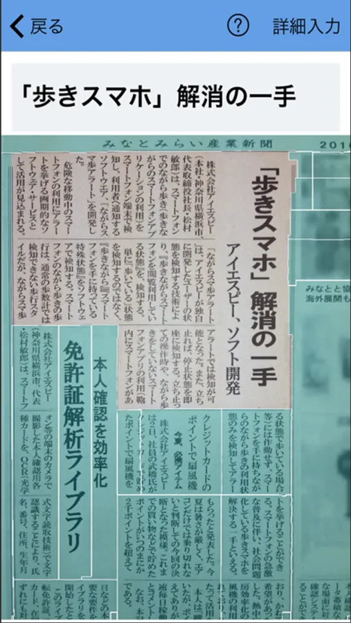 ・スマートフォンのカメラで新聞紙面を撮影すると、自動的に記事単位で切り抜きます