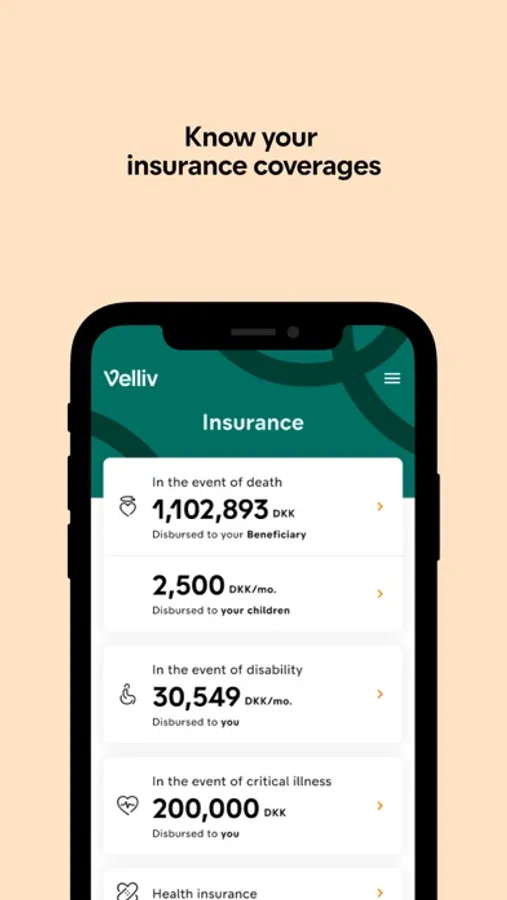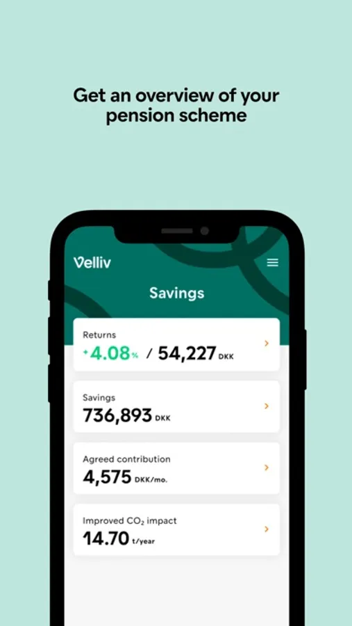 The app will provide you with an overview of your pension scheme at Velliv: