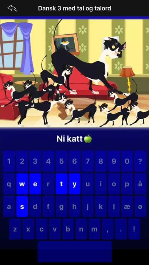 Træningen bliver gradvist vanskeligere i takt med, at du kan skrive ord eller sætninger korrekt.
