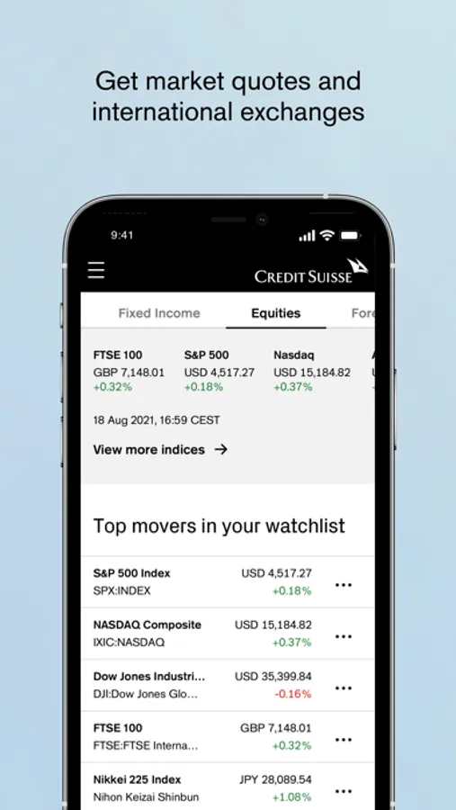 You must be a registered Credit Suisse Internet Banking user to access and use the App.