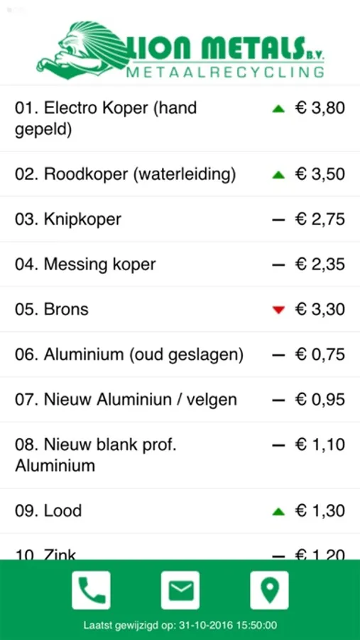 Op de hoogte blijven van de prijsontwikkelingen in oud ijzer? Download de app voor de actuele schrootprijzen van Lion Metals BV. De prijzen worden dagelijks vernieuwd.