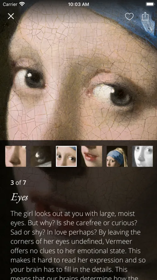 Discover, interact, learn from stories told by Mauritshuis experts or choose your favorite detail and share it with your friends on social media, including the option of hooking it up to your TV screen at home or at school.