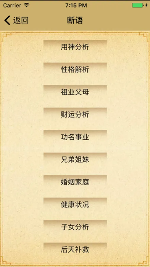 14.提供格局分析、用神分析、性格解析,以及祖业父母、财运、功名事业、兄弟姐妹、情感婚姻、子女分析。