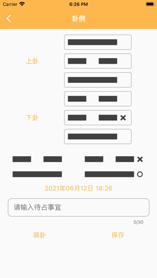 1.选择爻象创建卦例,请长按阴阳4个爻位的爻象,会出现拖动画面,拖动爻象到所属爻位上