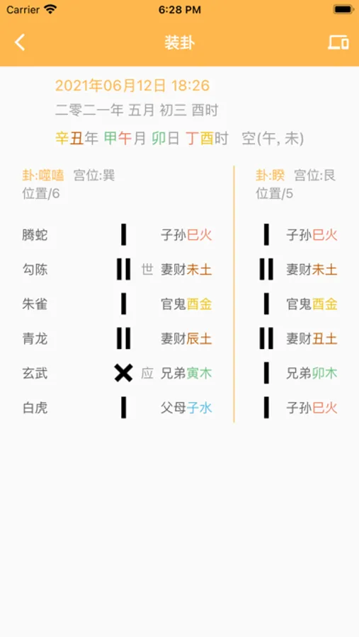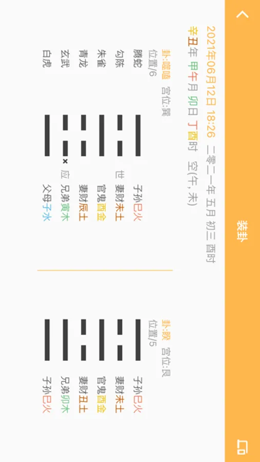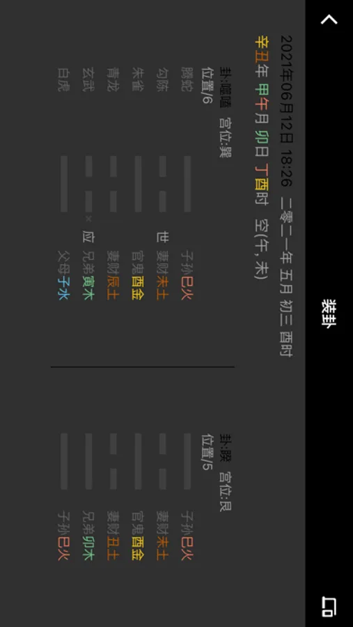 作为一位六爻爱好者,发现无论网上或者App中,没有一款六爻排盘软件可以方便用户进行拖动爻位的快速实现方式,特此开发此软件帮助用户快速起卦,并且对纳甲地支进行颜色区分。