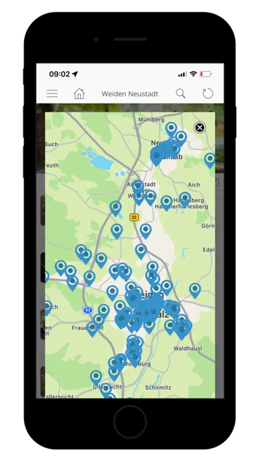 In the near future Region Weiden will show you the way to the nearest playground, public toilet, ATMs, Wi-Fi hotspot, kindergartens, hospital, power station and much more. There are also shopping tips with current bargains, promotions of bistros, pubs and restaurants.