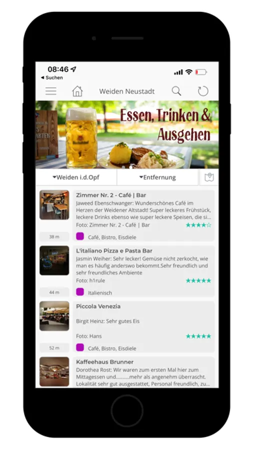 With Region Weiden you can get a glance, of what's going on in your area: all entries are registered on a map and sorted as a list by distance. With us, shop operators and owners, clubs and organizers are constantly adding news, deals, events and daily specials in the app - post and new locations are added daily.