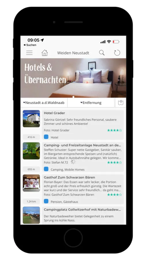 You will find here all the attractions, sights, and other important and interesting locations. The app gives free tips and suggestions on which locations you can visit. Region Weiden also offers you hundreds of constantly updated events.
