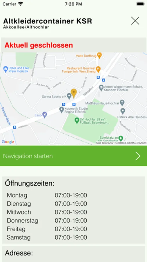 Die App navigiert außerdem zum nächsten Recyclinghof und kennt die Öffnungszeiten.