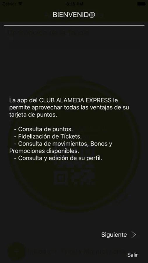 Aplicación para clientes suscritos a la plataforma de fidelización CLUB ALAMEDA EXPRESS