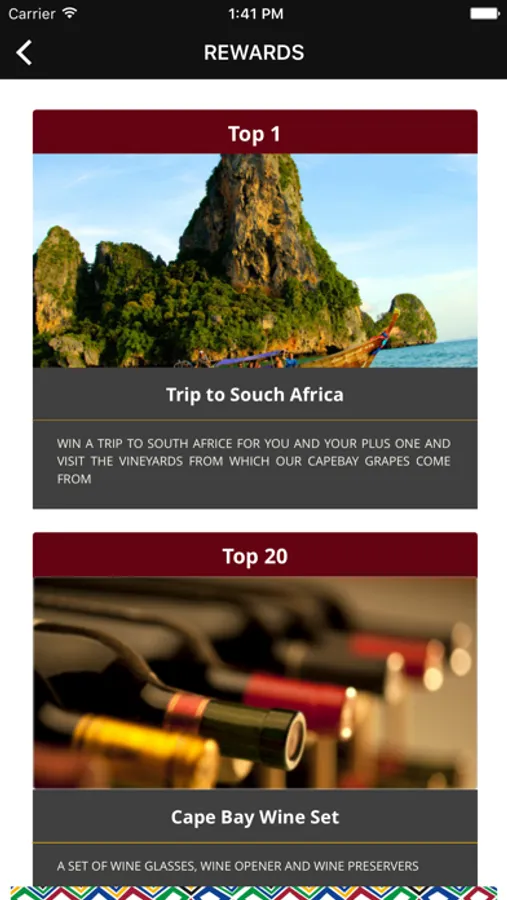 This user friendly application is your way to win a free trip to Cape Town, South Africa and other cool wine gifts. Download to activate your loyalty card, buy more Cape Bay Special Edition and check your score every day.