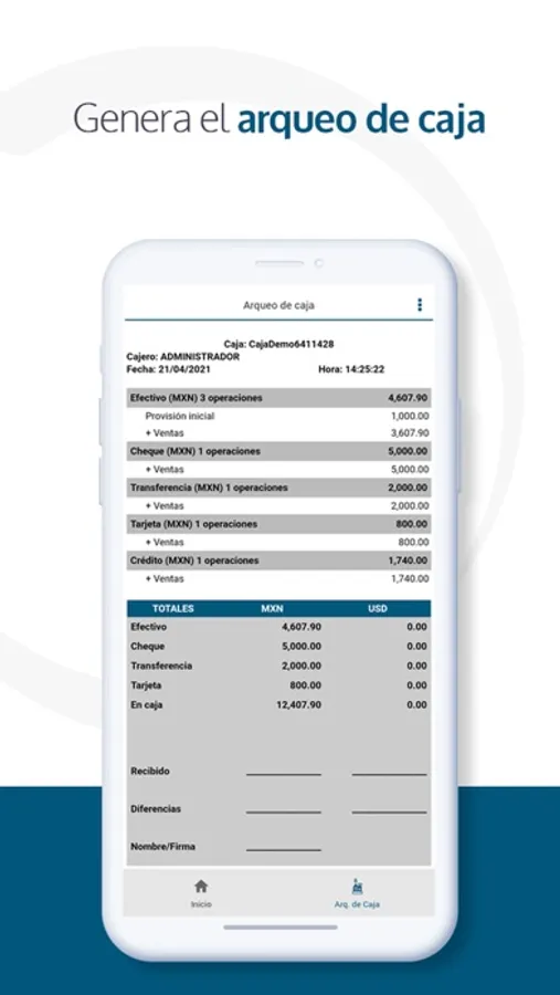 • Obtén en cualquier momento del día los reportes de corte de caja y arqueo de caja, separados por formas de pago.