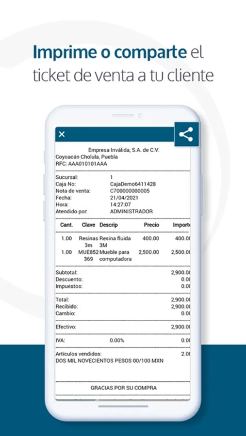 Emite de forma automática la factura electrónica (CFDI) de la nota de venta, con los datos fiscales del cliente y envíala por correo.