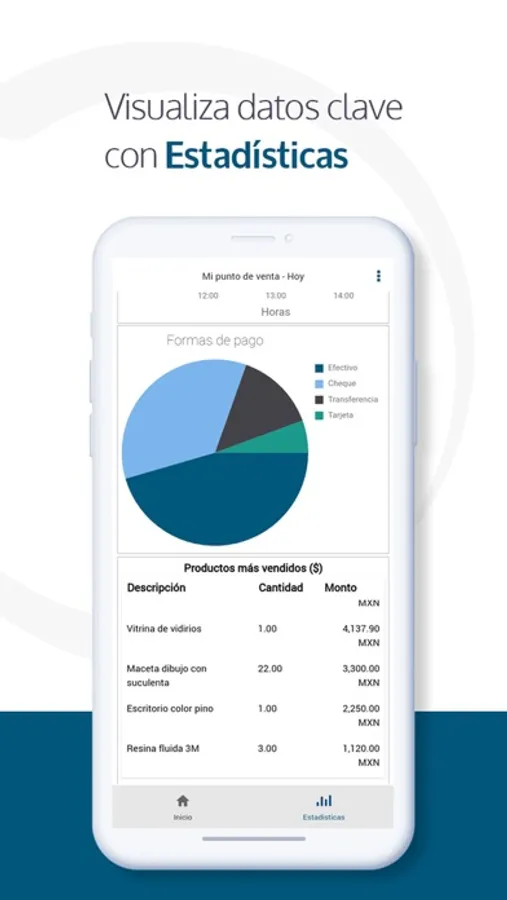Toma decisiones importantes en tiempo real de los productos más vendidos, notas de venta por hora, formas de pago, entre otras.