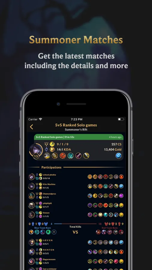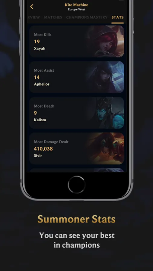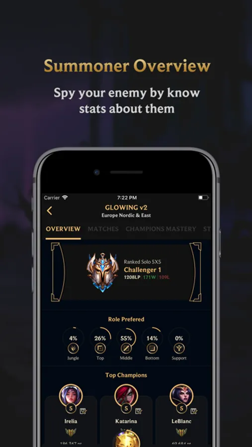 This app is your best source if you want to look up a summoner's match history, statistics, and rank!