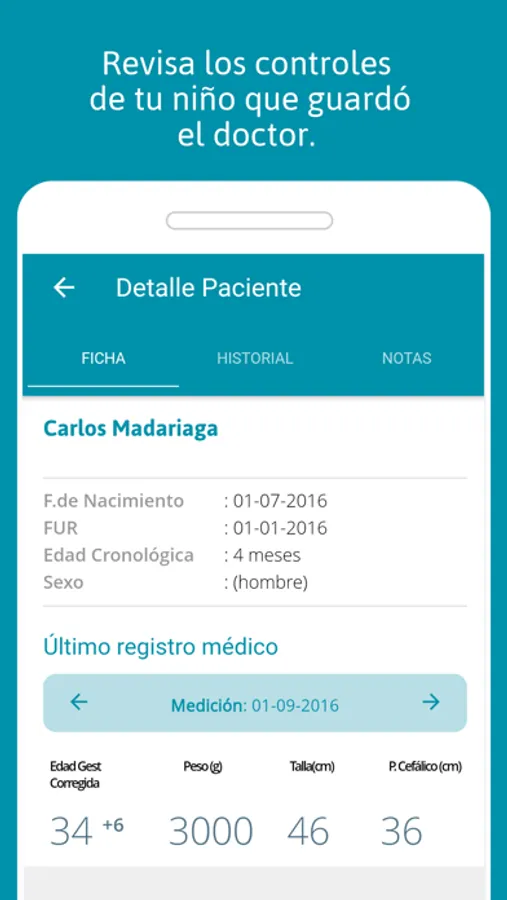 Crecimiento Neonatal también permite que el profesional de la salud que trata al niño pueda compartir fichas y notas con los padres de los niños, si así lo desean.