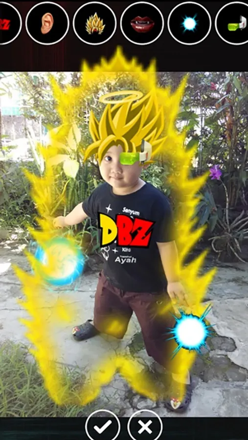 - Make a photo directly from the camera and transforms people into Saiyan
