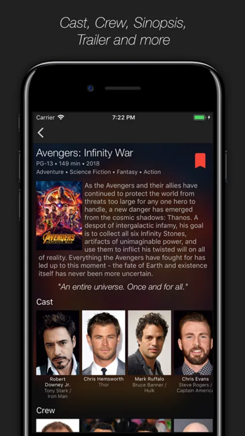 Search or browse the latest, popular, upcoming and top rated movies. Access cast and crew bio, trailer, sinopsis and more.