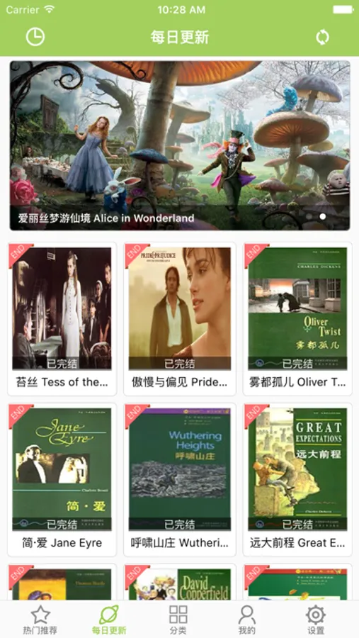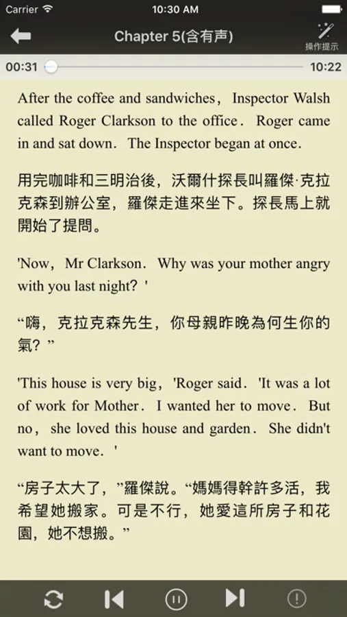 这里有上千本经典的中英文双语小说,中英文双语对照阅读,真人有声阅读,“听、读、译”最佳配合学习英文,是您学习英文的最佳工具!