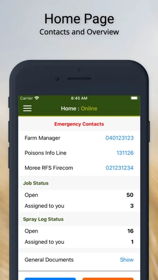 • Fast access to emergency contacts and farm summary information - including a live farm activity feed.