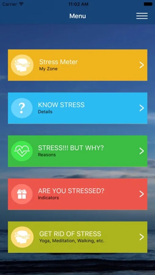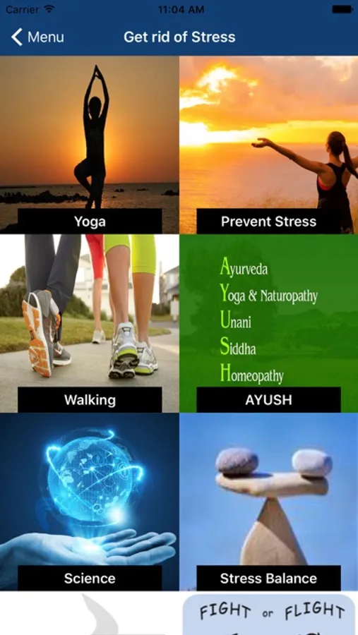 • The user are also provided with different types of stress management techniques, through which the user will be able to reduce stress in their life. The techniques include: