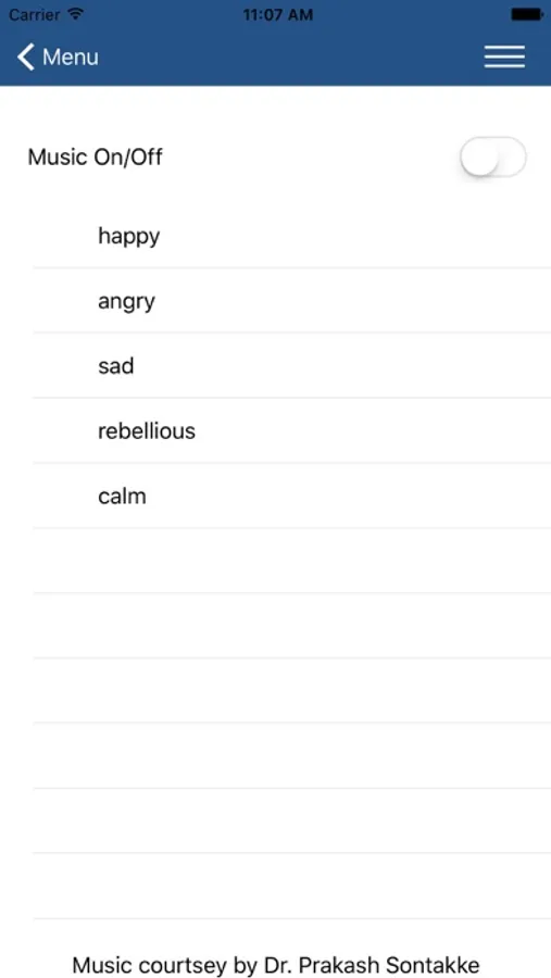 • The application also has a music option from which a user can select different type of music as per their mood.