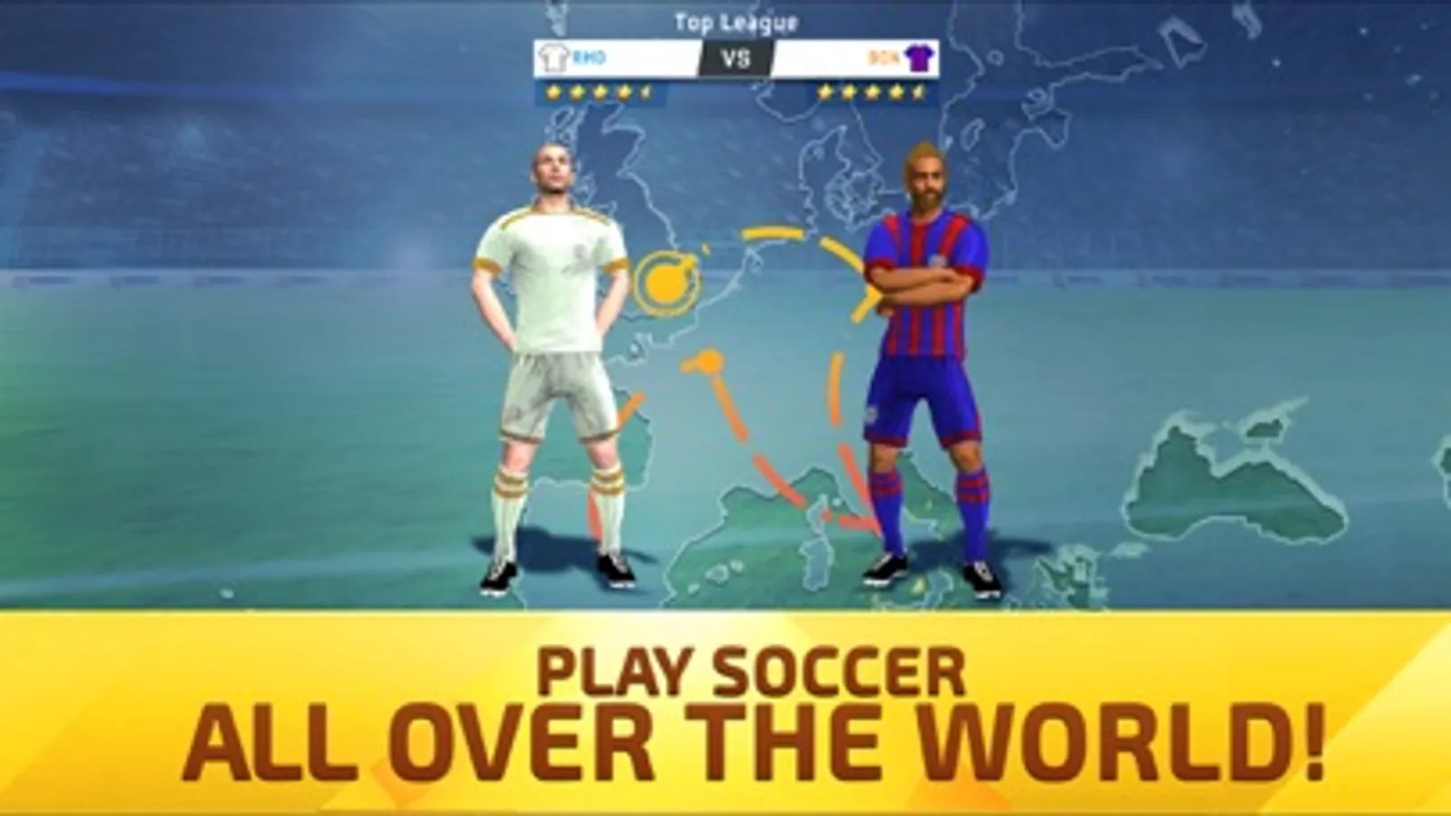 We give you the opportunity to play against the best soccer players from around the world, you will be able to win the best soccer matches and championships. In addition, if you manage to be the best player in the world or become a great player in a soccer team of the major league, your national soccer team will call you to go with them to the next World Cup.