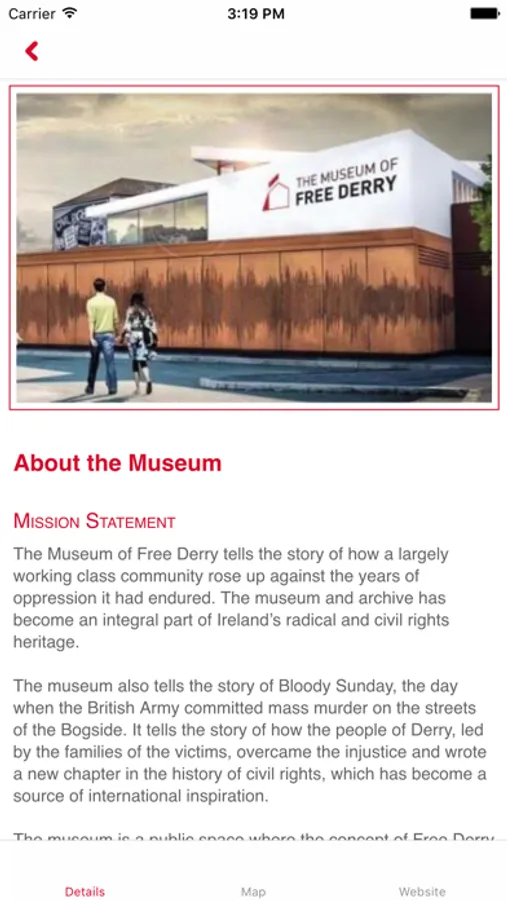 The museum also tells the story of Bloody Sunday, the day when the British Army committed mass murder on the streets of the Bogside. It tells the story of how the people of Derry, led by the families of the victims, overcame the injustice and wrote a new chapter in the history of civil rights, which has become a source of international inspiration.