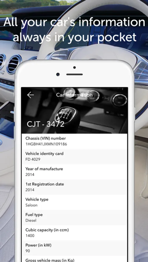 Taking care of your car has never been easier, with the Car Assistant app you have instant access to all of your car’s information, service history and upcoming events wherever and whenever you need it.