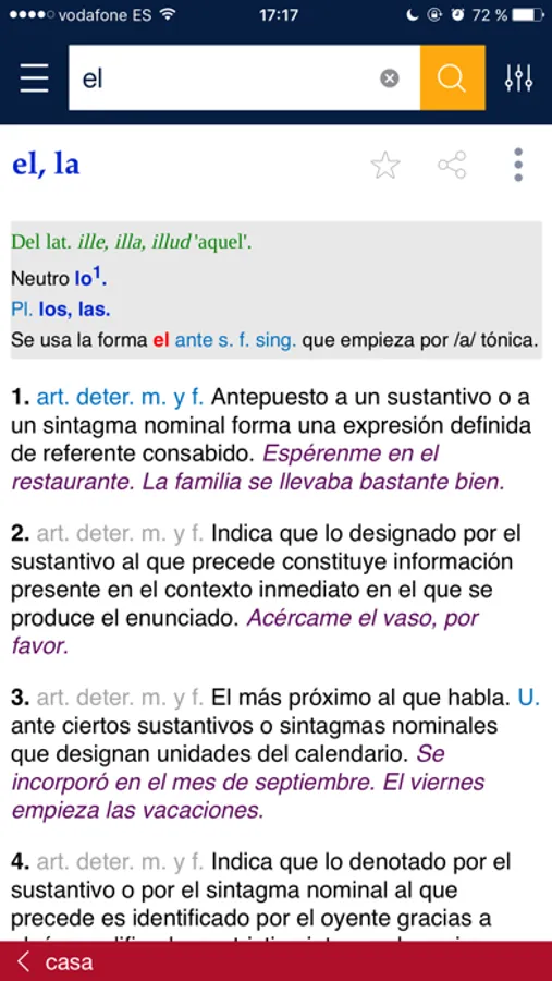 Resuelva al instante y de forma fácil cualquier duda sobre el significado de una palabra y sus características ortográficas y gramaticales, accediendo directamente a la base de datos de la Real Academia Española.