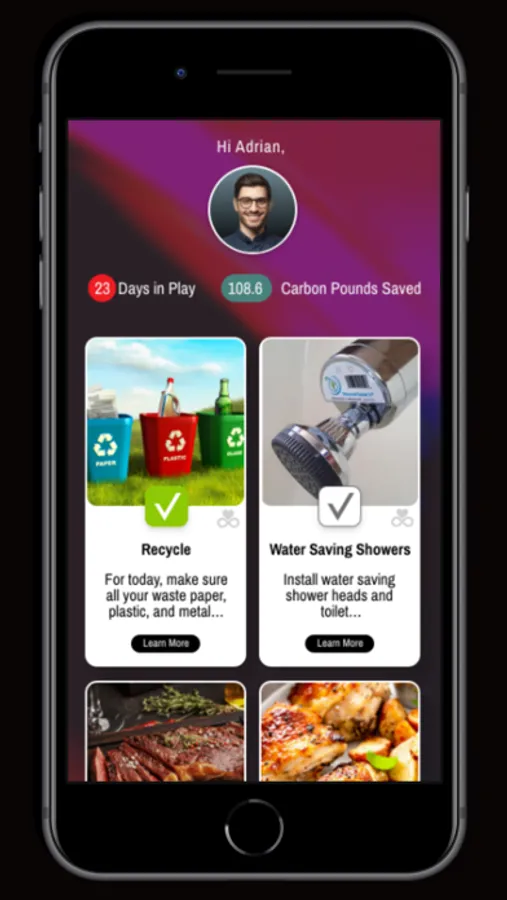 The app is a tool to educate, engage, and empower you to take on carbon-reducing actions in your life.