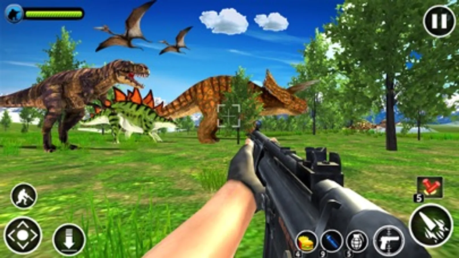 Filled with action, challenge and lots of thrill, shooting adventure in extreme wilderness. Real Dino Jungle Hunting game is all about thrill, shooting and wilderness in beautiful but wild environments. Remember, Dinosaurs are smart and clever animals so you need to be alert and professional in hunting a dino. Make perfect aim and apply your sniper shooting and aiming skills while holding your breath as a professional dino hunting expert. You are on a sniper shooting expedition with other guns too where you have to hunt dino.There are nine types of dinosaurs for hunting.
