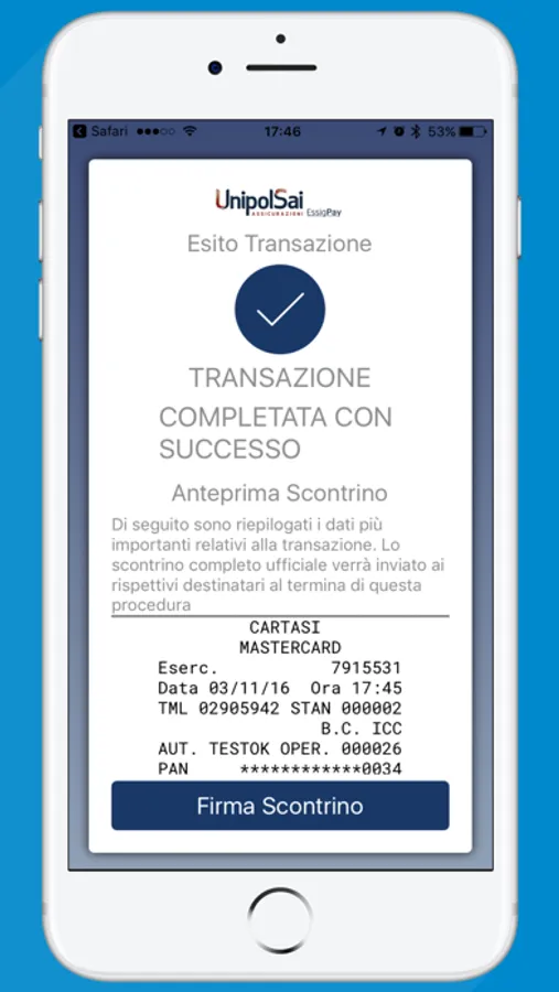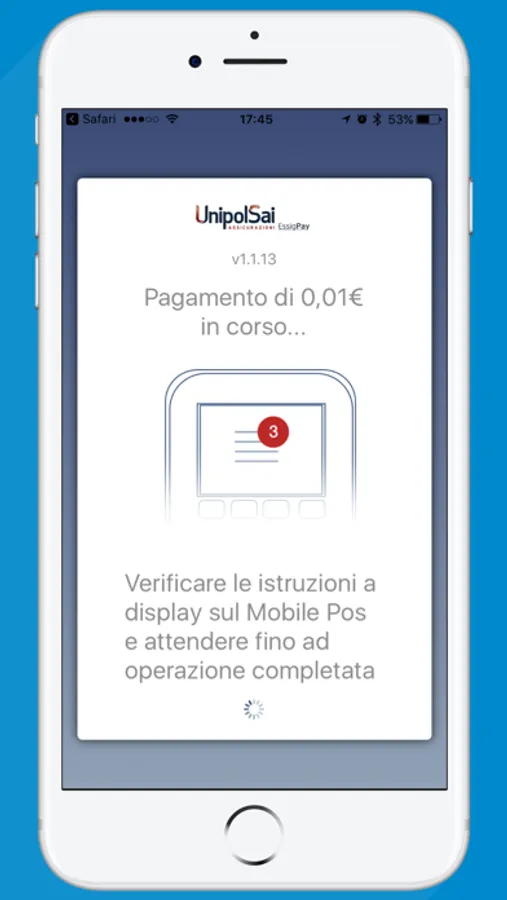 Applicazione che consente agli intermediari UnipolSai, di effettuare i pagamenti in mobilità utilizzando un adeguato dispositivo MPOS