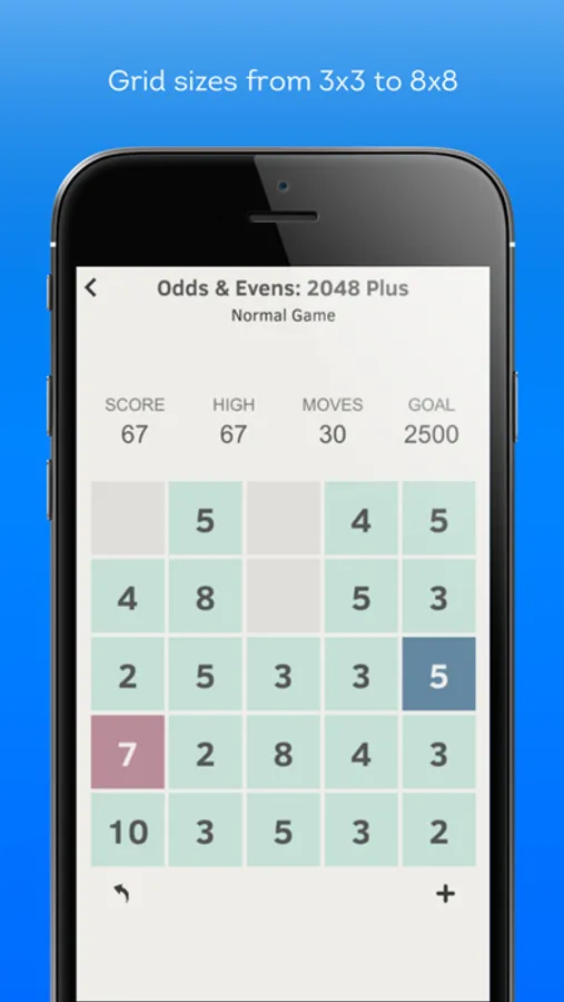 Odds & Evens is a unique twist on 2048, containing multiple gameplay modes and allowing for customized game settings. In Odds & Evens gameplay mode, swipe the board in 4 directions to match tiles that are multiples of one another. Look out for trick tiles that can only match with others that are odd or even, but that can be combined with other trick tiles to create super tiles that will help you clear the board faster. In 2048 gameplay mode, combine tiles with others of the same value and work your way towards 2048 and beyond.