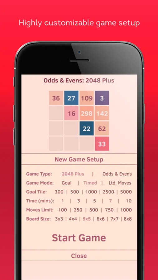 - Customize Game Mode, Grid Size, and Goal/Challenge