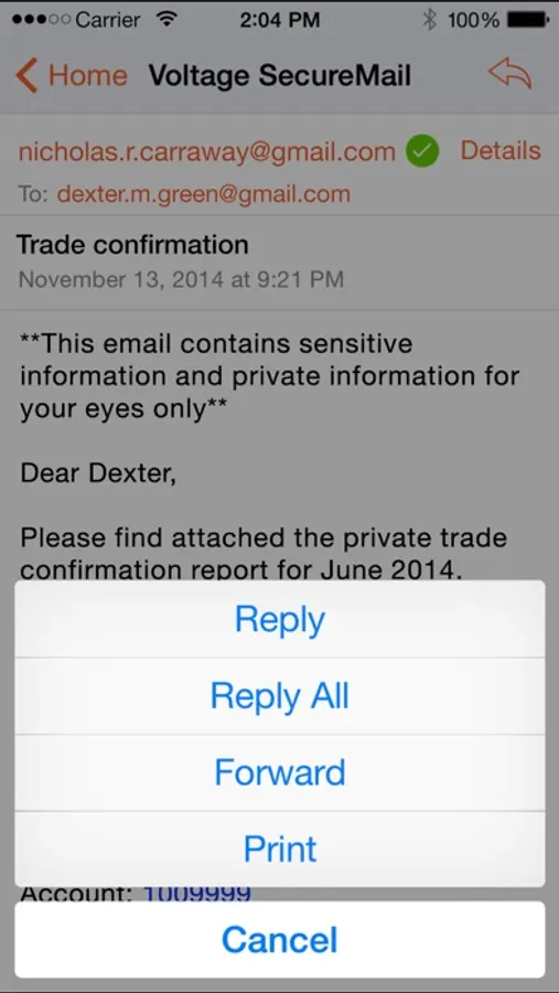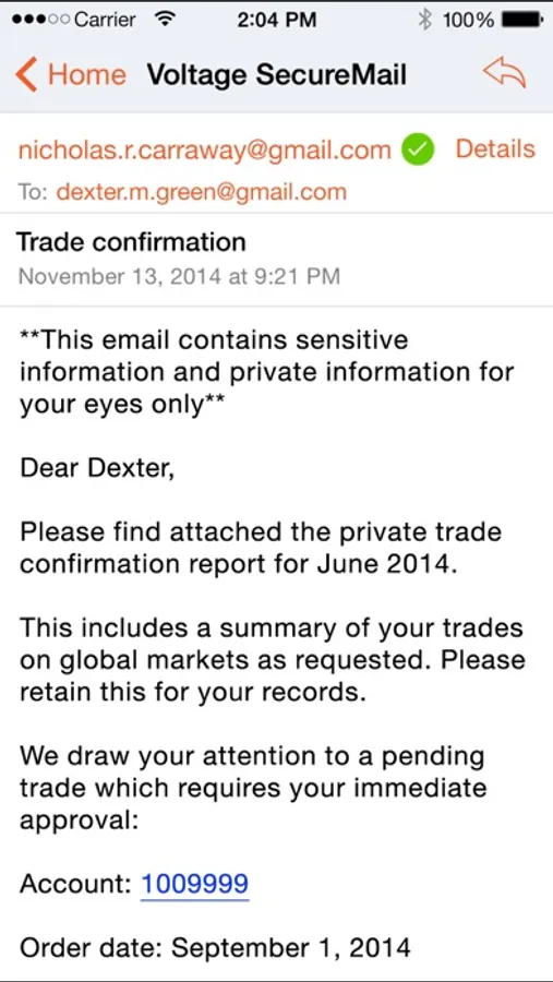 • Seamless Experience - Automatically detects and opens encrypted emails in the Voltage SecureMail app with a single tap
