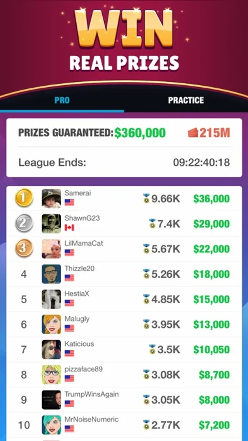 Put your vocabulary to the test and you could win real cash! Outspell and outscore your opponent in 1v1 battles or compete in grand tournaments for even larger cash prizes. The redesigned Scrabble-inspired board features unique no-wait gameplay, score-enhancing special tiles, and exciting time bonuses that takes the classic word game to a more competitive level. Start playing today and make your AP English teacher proud.