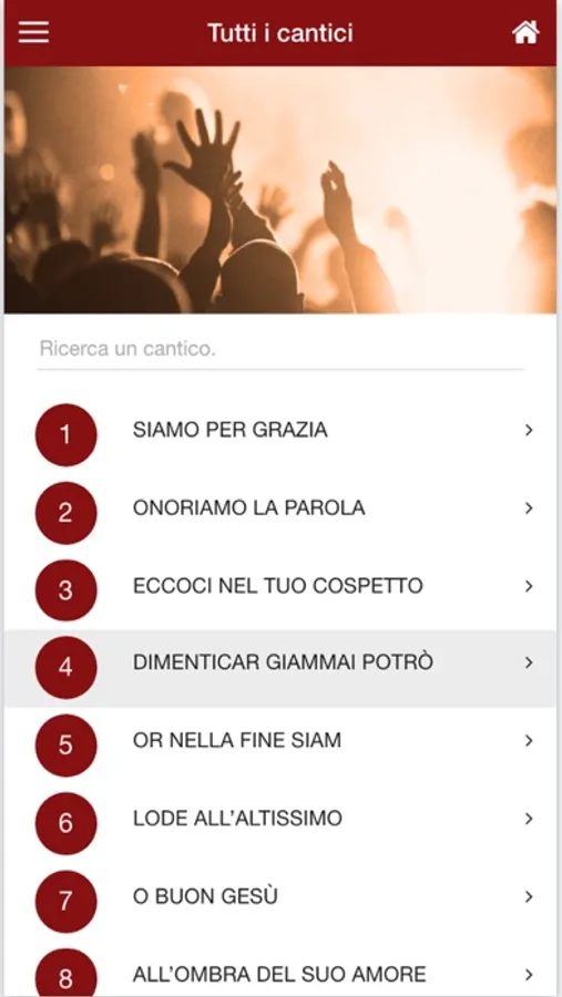 -salva i tuoi cantici nei preferiti per visualizzarli in qualsiasi momento;