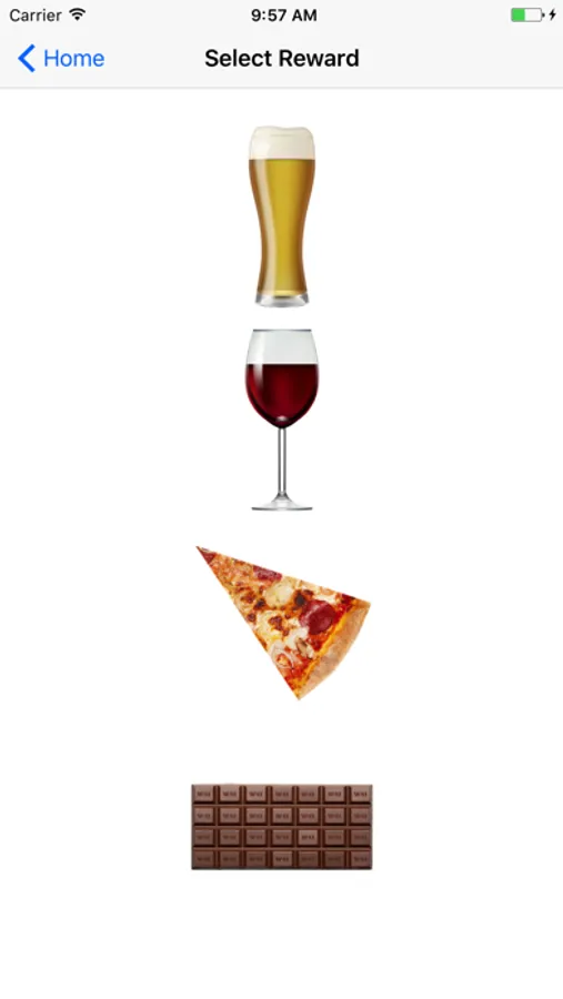 - Select your desired reward of beer, wine, pizza, or chocolate