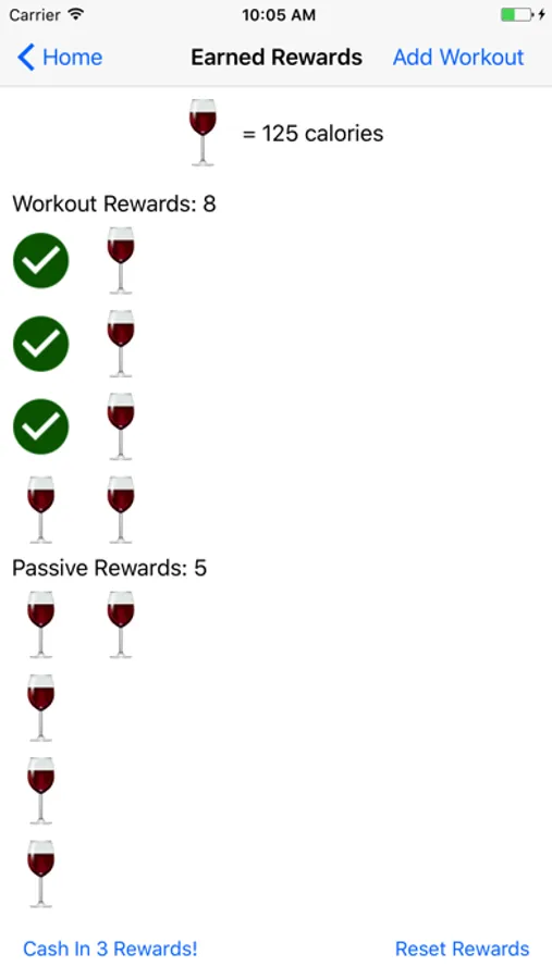 - When you’re finished touch the “Stop Workout” button and see how many rewards you earned