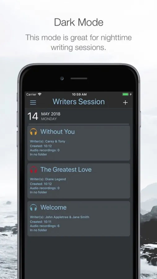 Writers Session is a perfect songwriter’s companion. It provides a single place to record and organise all your lyrics and melodic ideas.