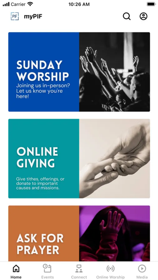 • Our CHECK IN feature lets us know you're coming out to worship with us on Sundays. We use your information safely to connect you to important and relevant church resources. If you're new to our church, it's a great way to connect!