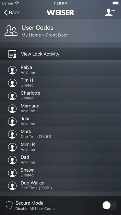 • User Code Management – Easily send, add, delete, or disable user codes. Schedule access for certain times/days.