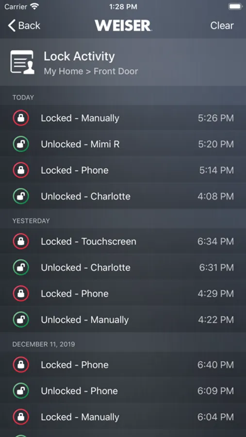 • Lock Monitoring – View lock activity, history, and status notifications when lock is used via the Premis App