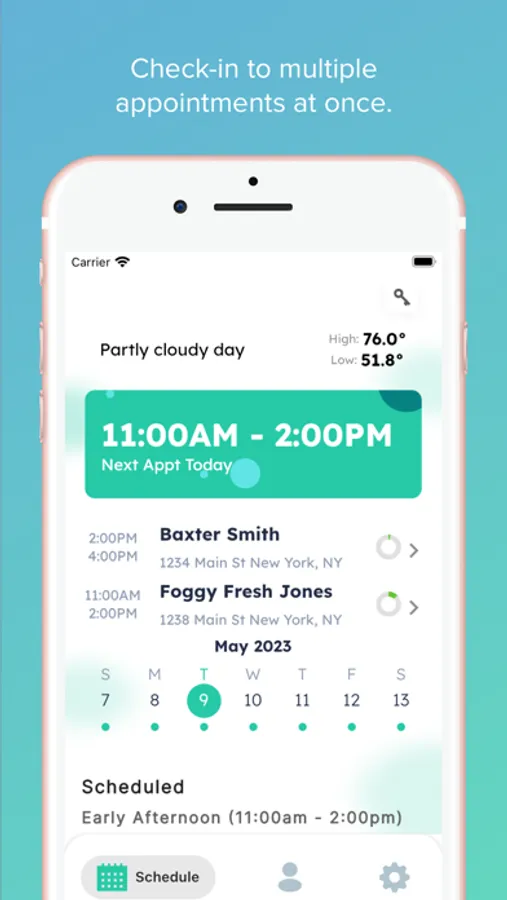 • Check-in to multiple appointments at once.