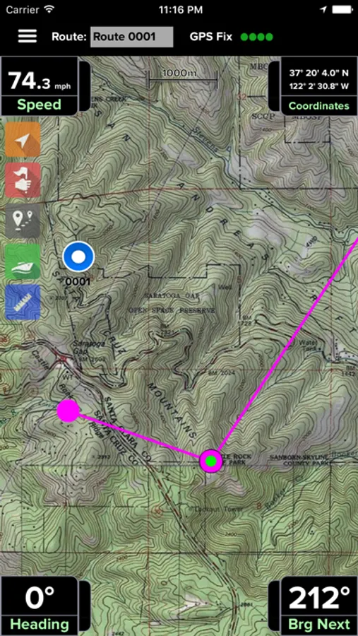 • Easy one-touch Waypoint and Route creation. Pre-plan your routes at home or create them in the field with equal ease. Just touch the screen to create new waypoints and routes.