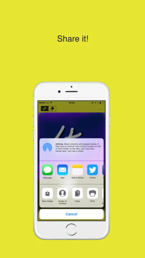 Your drawings can be sent or published via Message, Mail, Twitter, Facebook, Dropbox (if the app installed to device) or other third-party apps.