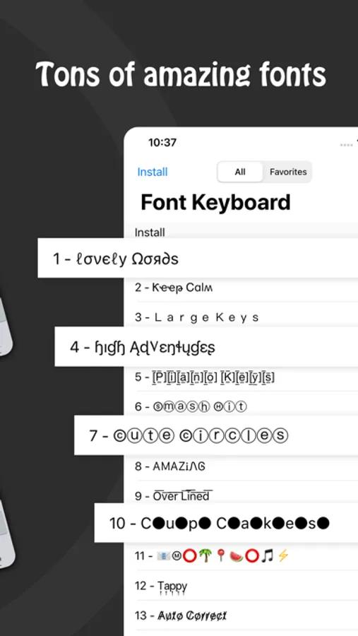 What is Fonts Keyboard? It’s a keyboard application that could make your iPhone’s keyboard different from your friends. Specifically, you could type your sms text with cool fonts and insert amazing emojis!