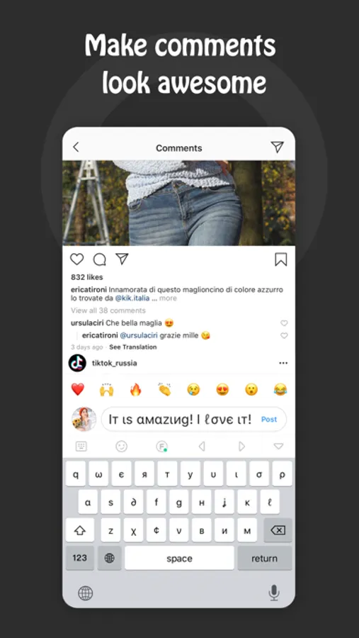 Additionally, Fonts Keyboard is really useful to make your Instagram, Snapchat and Tik Tok profiles, stories and posts stand out with custom amazing fonts and emojis!